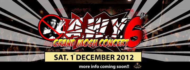 Uncategorized AWY6 GRAND MOSH CONCERT, 1ST DEC 2012 Share this: Click to share on X (Opens in new window) X Click to share on Facebook (Opens in new window) Facebook Click to share on Tumblr (Opens in new window) Tumblr Click to share on Pinterest (Opens in new window) Pinterest Click to email a link to a friend (Opens in new window) Email Like Loading... Related