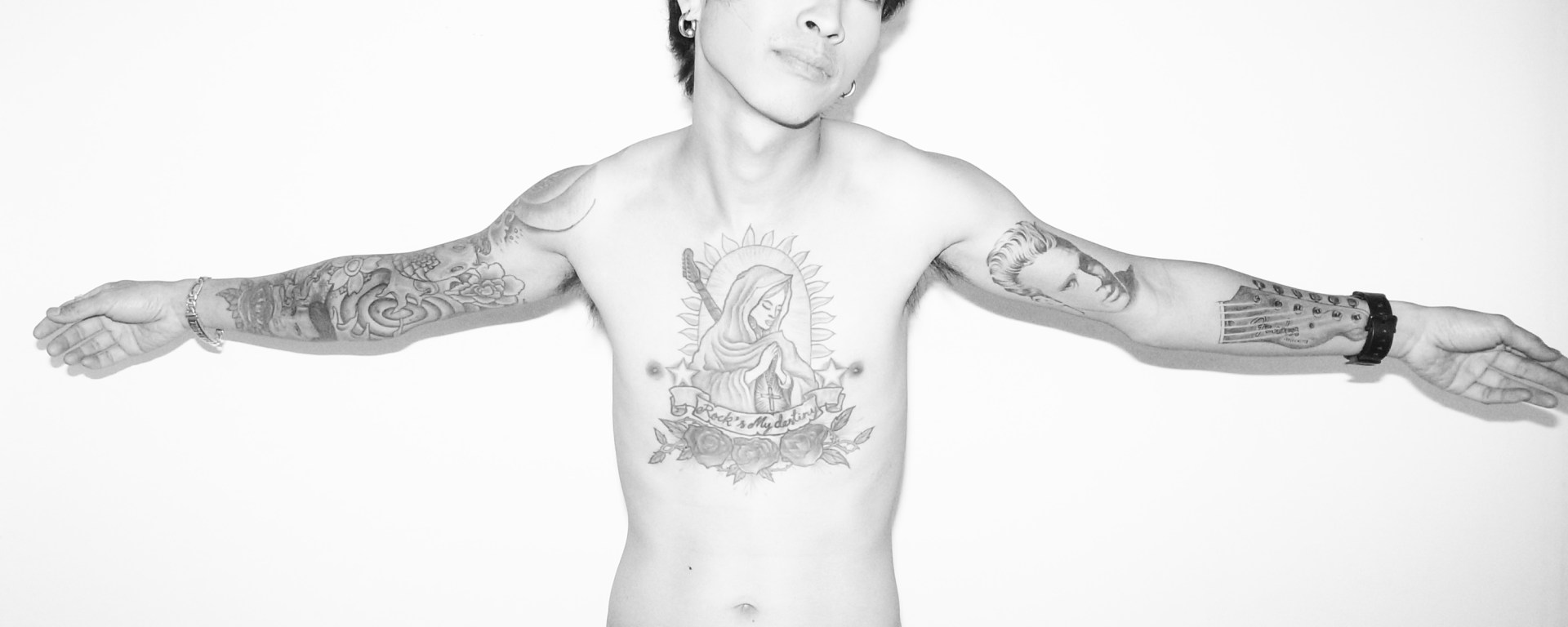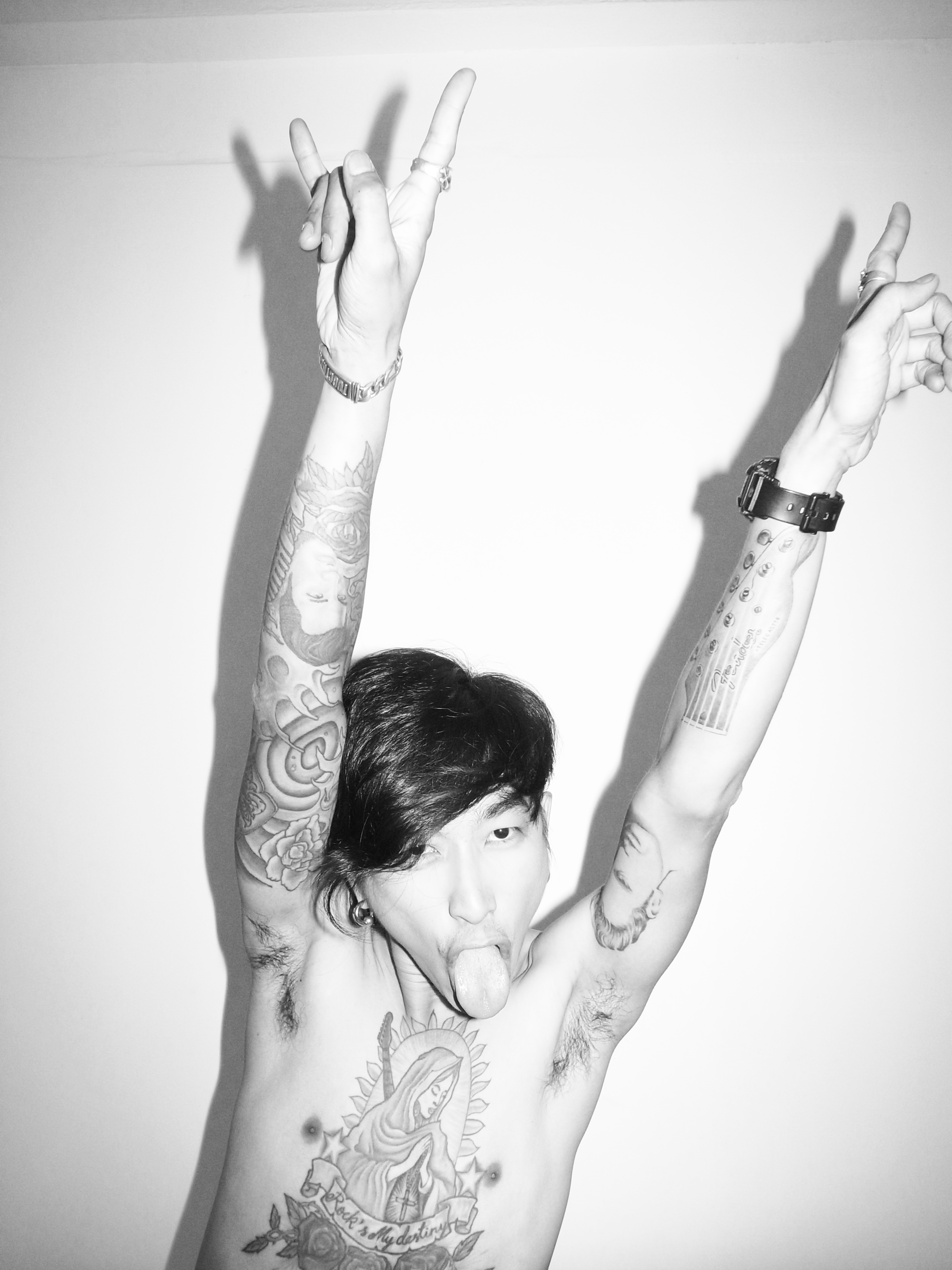 แล้วถ้าเทียบกับรอยสัก แบบไหนมีอิทธิพลกับตัวเอง – รอยสักนี่มันบังเอิญเราอยากมีรอยสัก ใส่ความรู้สึกหลายอย่างลงไปในหลายลายที่สัก ทุกครั้งที่สักมันจะมีเรื่องว่าเราอยากจะฝังลายอะไรลงไป จะขับเราให้ออกมาอารมณ์แบบไหน และมันจะลิงค์กันกับดนตรีเสมอ รอยสักมันคือตัวตน ตอกย้ำว่าเราคืออะไร Rock Is My Destiny คือโชคชะตาของเรา