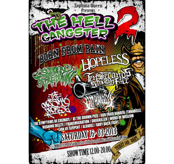 Uncategorized THE HELL GANGSTER 2 – SATURDAY 16/3/13 Share this: Click to share on X (Opens in new window) X Click to share on Facebook (Opens in new window) Facebook Click to share on Tumblr (Opens in new window) Tumblr Click to share on Pinterest (Opens in new window) Pinterest Click to email a link to a friend (Opens in new window) Email Like Loading... Related
