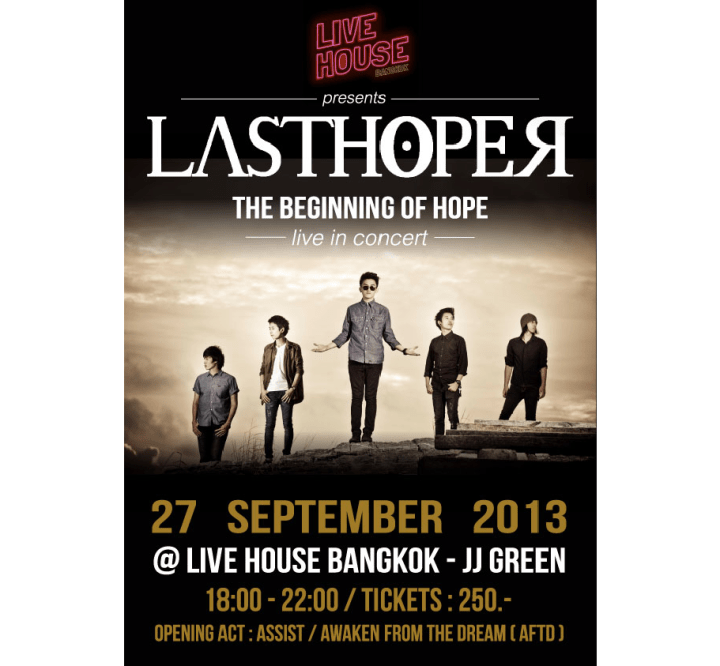 Uncategorized CONCERT/EVENT: LASTHOPER LIVE IN CONCERT – 27 SEPTEMBER 2013 @LIVE HOUSE BANGKOK Share this: Click to share on X (Opens in new window) X Click to share on Facebook (Opens in new window) Facebook Click to share on Tumblr (Opens in new window) Tumblr Click to share on Pinterest (Opens in new window) Pinterest Click to email a link to a friend (Opens in new window) Email Like Loading... Related
