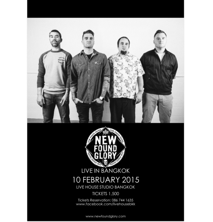 New Found Glory will perform in Bangkok at Live House Studio Bangkok on 10th February 2015.