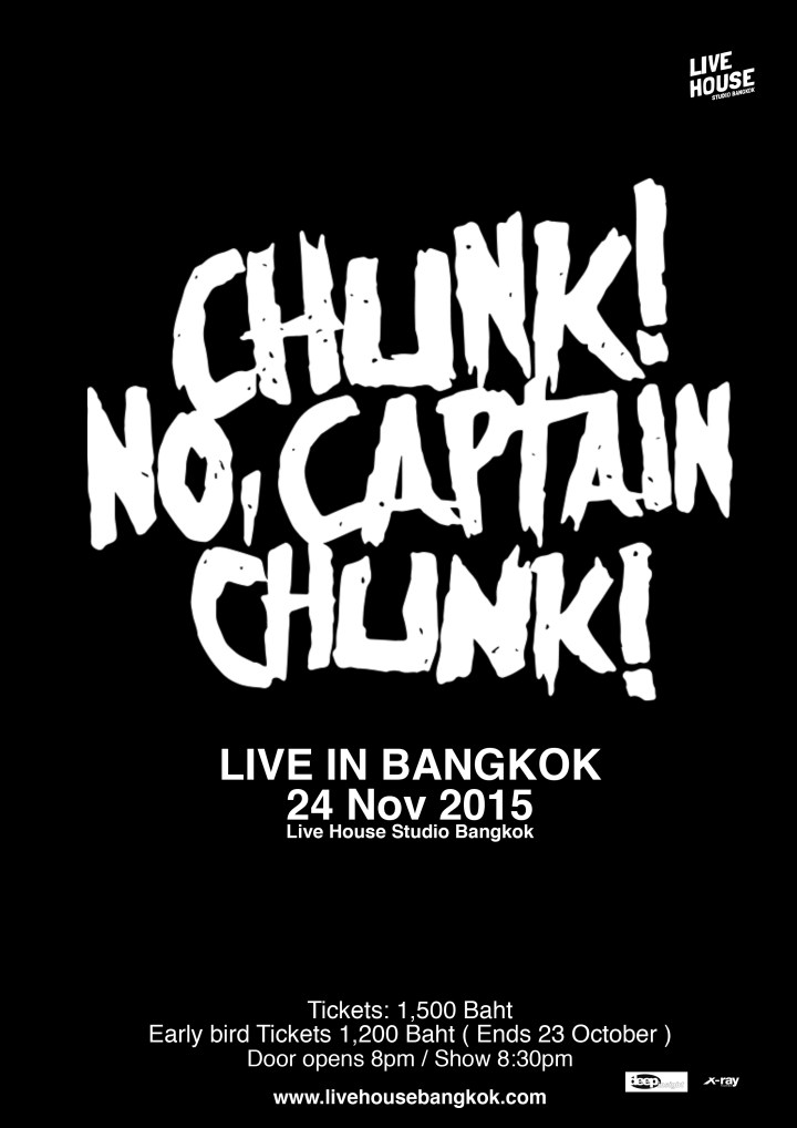 Chunk! No, Captain Chunk! to perform in Bangkok on the 24 November 2015 at Live House Studio Bangkok.